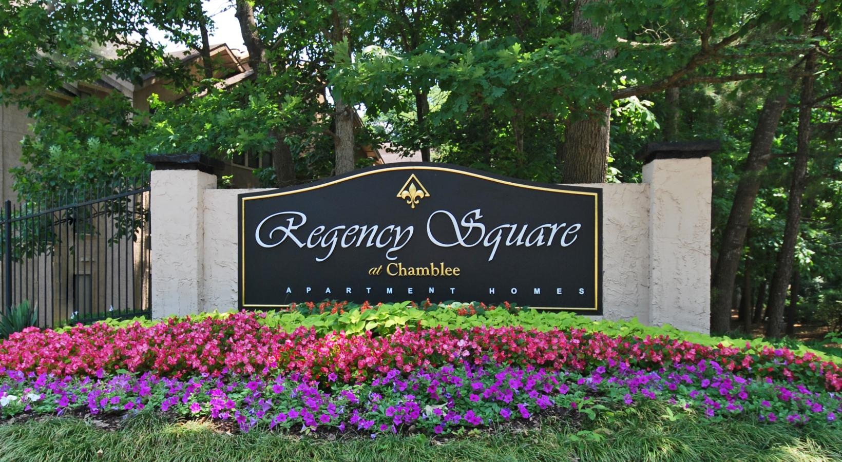 Regency Square community signage Swimming pool with lounge seating and umbrellas Fitness center with a variety of cardio and weight machines Fitness center with a variety of cardio and weight machines Fitness center with cardio machines and weights Furnished clubhouse with ample seating Furnished clubhouse with ample seating Clubhouse kitchen with stainless steel appliances Clubhouse kitchen with stainless steel appliances Clubhouse kitchen with stainless steel appliances and bar top seating Elevator access to fitness center Beautiful walk ways between buildings Beautiful walk ways between buildings a room with tables and chairs Fenced in dog park Business center with computers and printer Regency Square exterior building Convenient, covered parking beneath your home Aerial view of Regency Square Beautiful walk ways between buildings