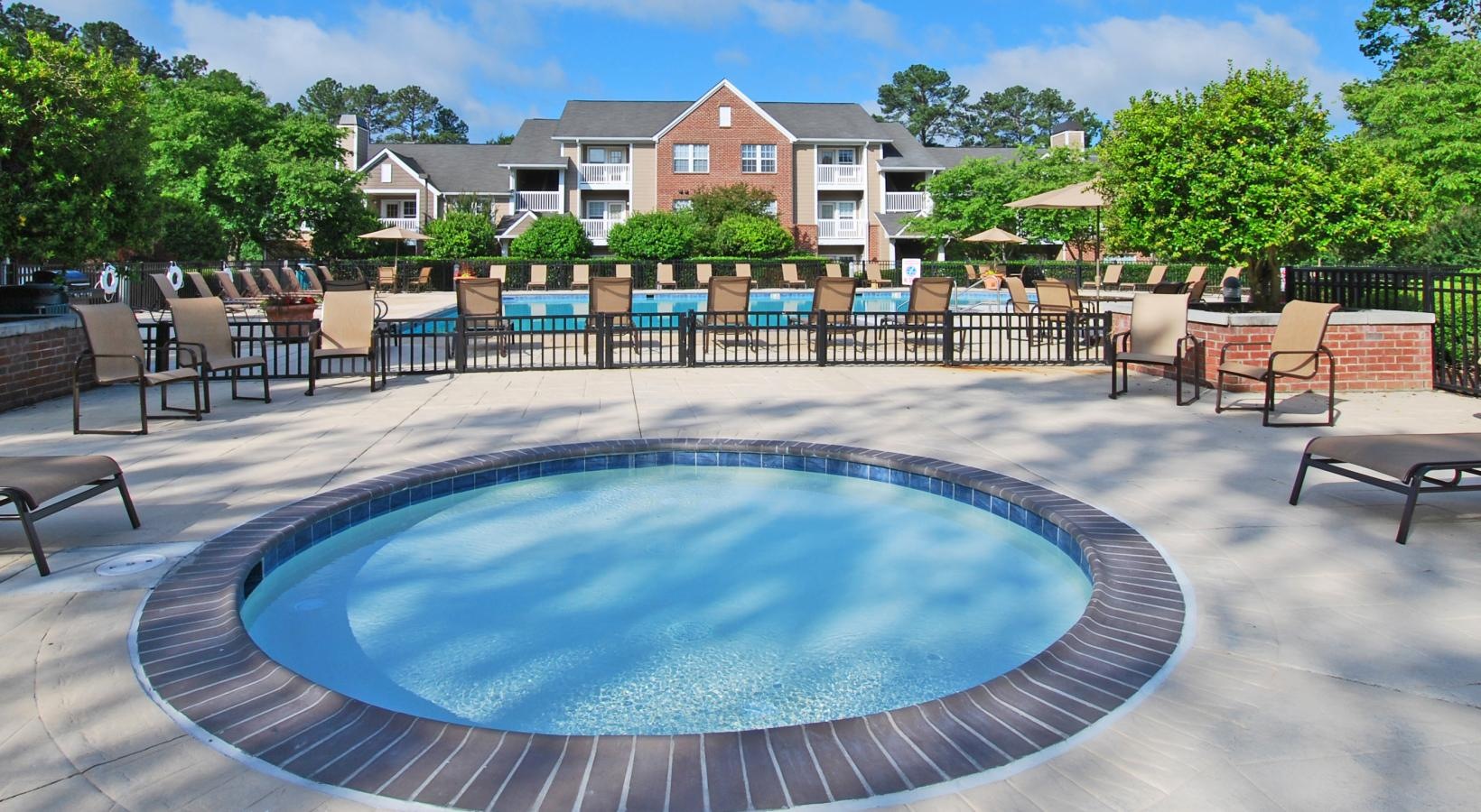 Resort-style swimming pool plaza with lounge seating and umbrellas Resort-style swimming pool plaza with lounge seating and umbrellas The Crossings at Short Pump exterior building Jacuzzi at the pool Swimming pool with lounge seating and umbrellas Swimming pool with lounge seating and umbrellas Gazebo and playground among beautifully landscaped grounds Open lawn with playground Fitness center with a variety of cardio and weight machines Fitness center with a variety of cardio and weight machines Business Center at The Crossings at Short Pump The Crossings at Short Pump exterior building The Crossings at Short Pump exterior entryway to pool Detached garages available